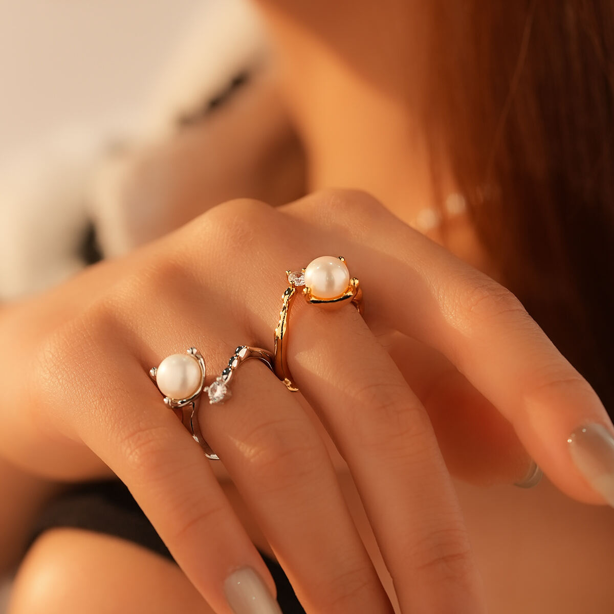Inspired by "water ripples," the band curves like soft waves, paired with a plump pearl (like a moon on water) and a glinting CZ (like a star on ripples). Blending French retro softness with everyday minimalism, it skips the stuffiness of classic pearl jewelry – perfect for any outfit.