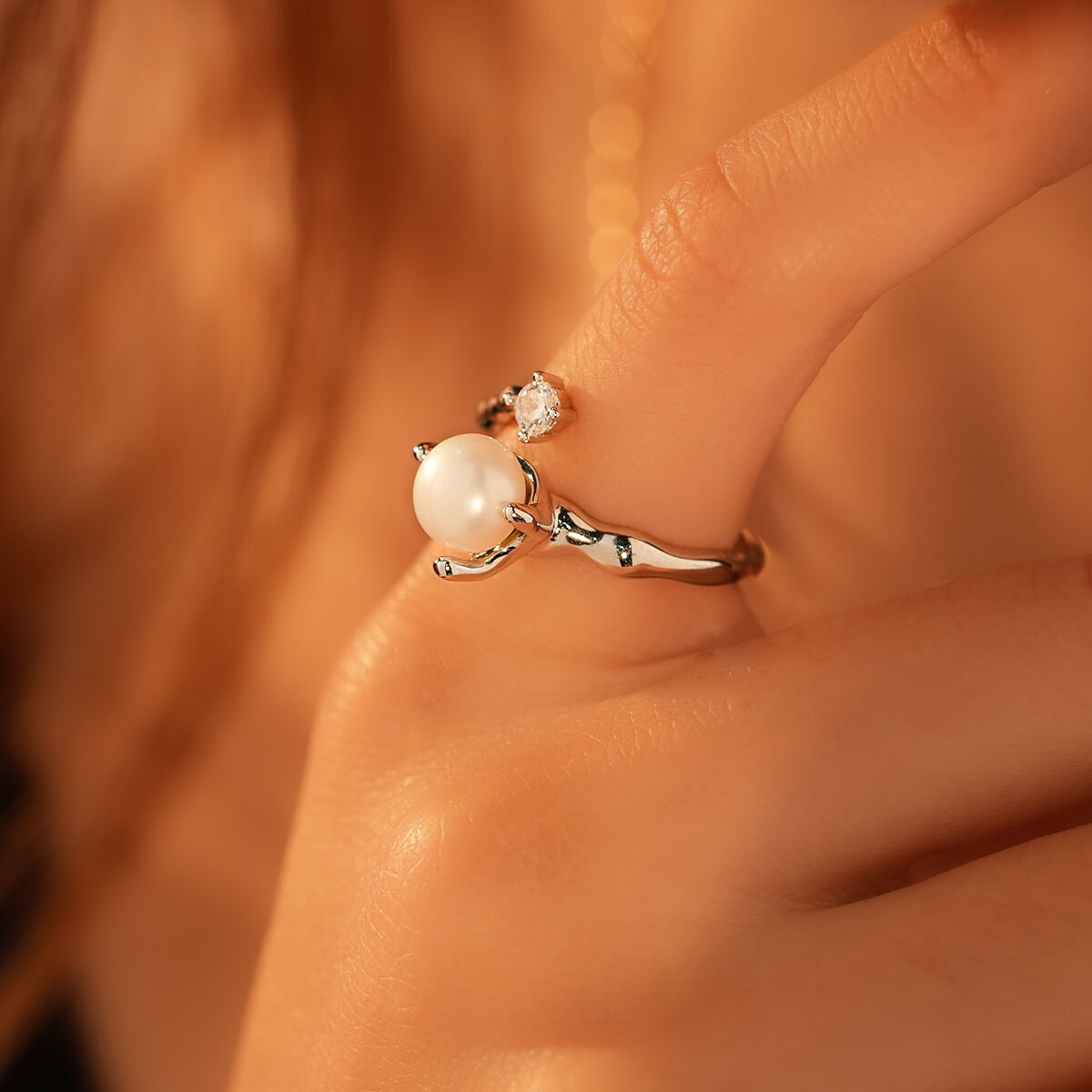 925 Silver Open Ring | Pearl + CZ Sparkle – Your Go-To Gentle Vibe Piece for Work & Dates