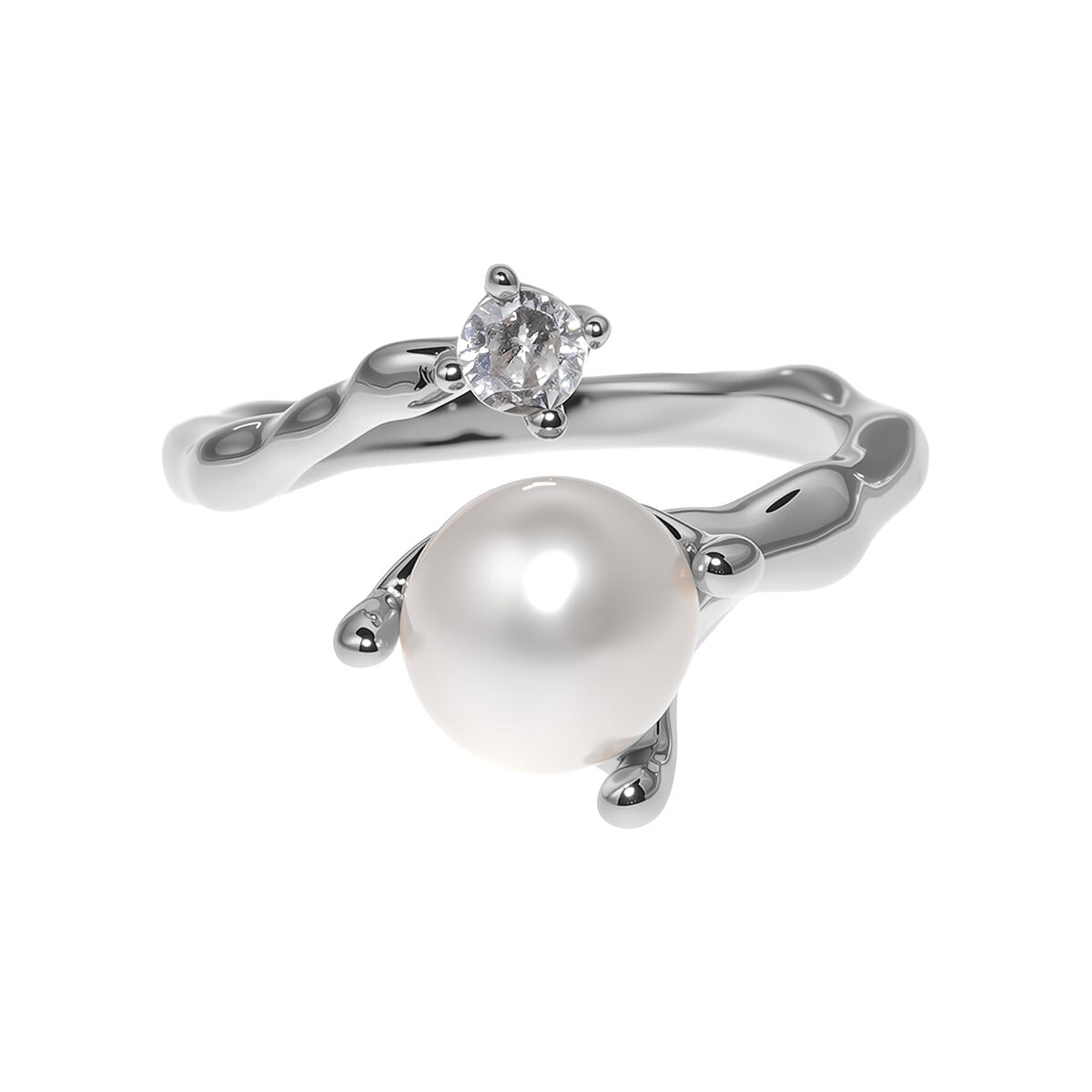 Marrinu 925 Silver Pearl & CZ Open Ring (SKU: BXRAG005)