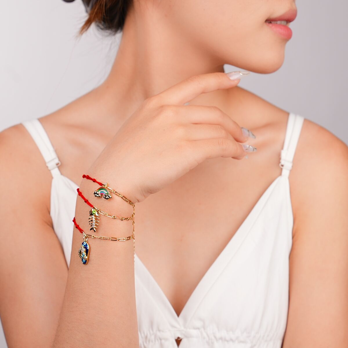 Centered around the theme of “Lucky Protection,” this bracelet combines the traditional symbolism of the red string with a modern, versatile charm to create an everyday piece that’s both stylish and meaningful.