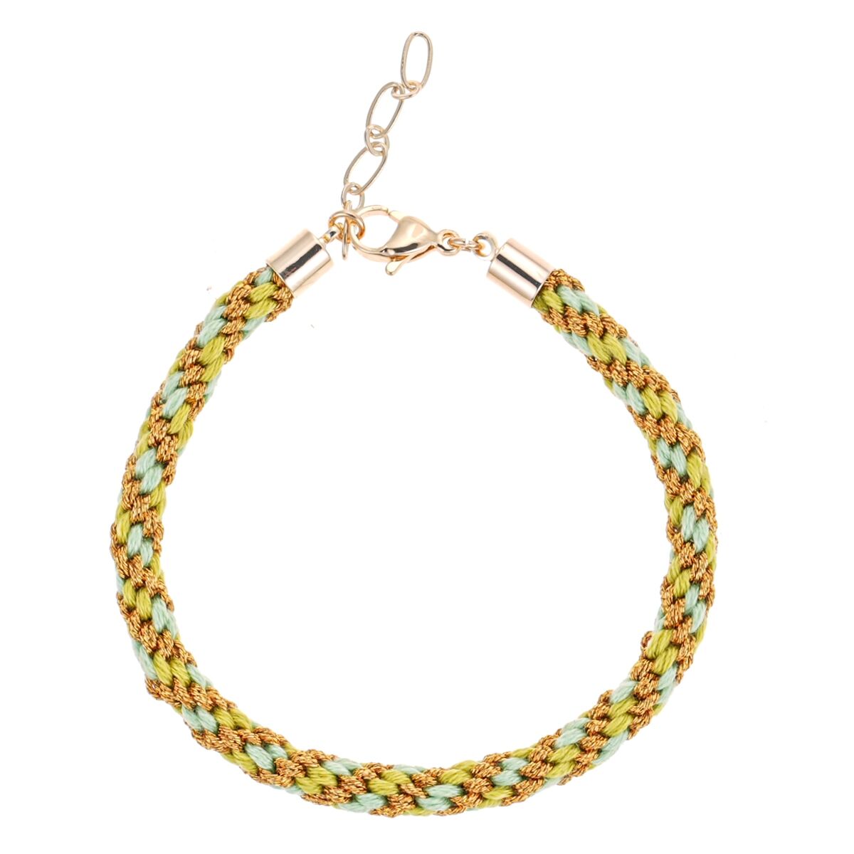 Each bracelet is hand-braided with mixed-color threads, creating a dense, textured weave that feels both tactile and visually rich.
