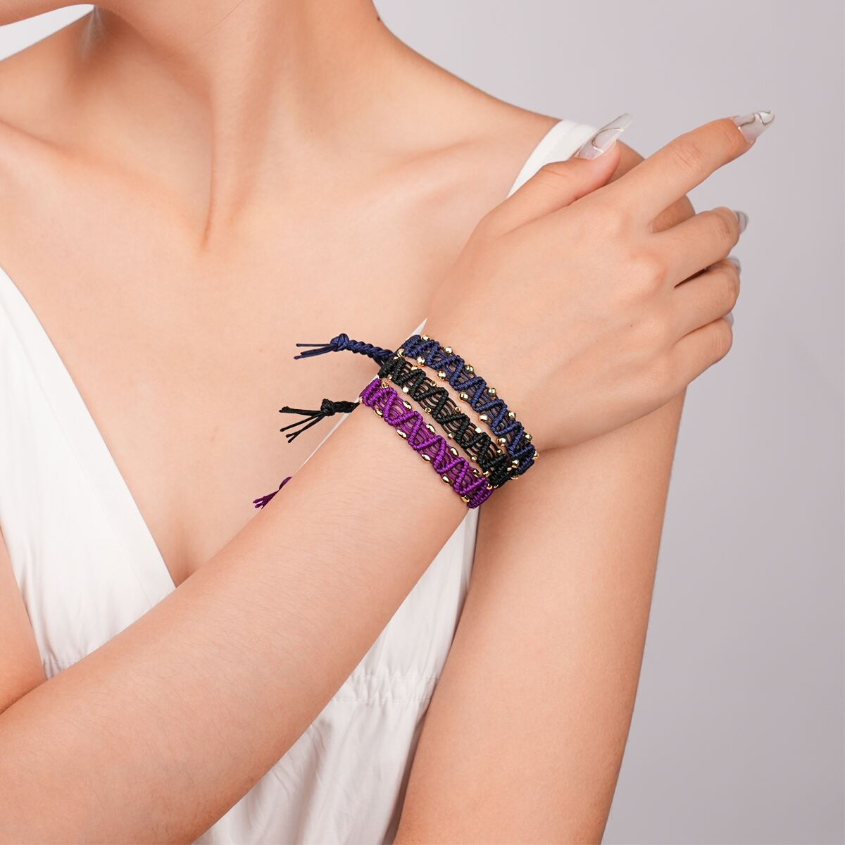 Each bracelet is handwoven into an open, breathable hollow-out pattern, creating a lightweight, textured look that feels airy on the wrist.