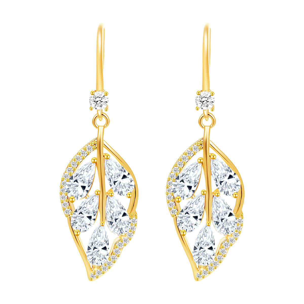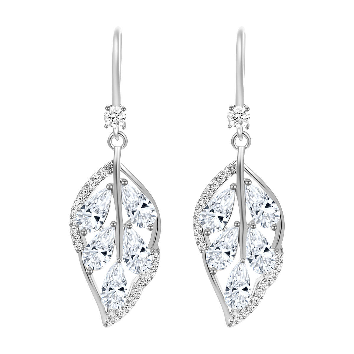 Yiwu Factory Direct: Copper + 925 Silver Hook Pave-Set Zircon Leaf Earrings | Custom Colors, Sizes, Logos & Packaging Available