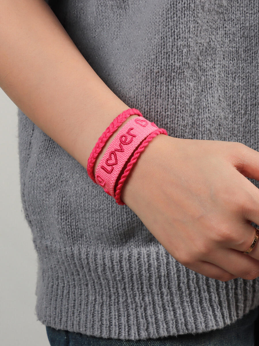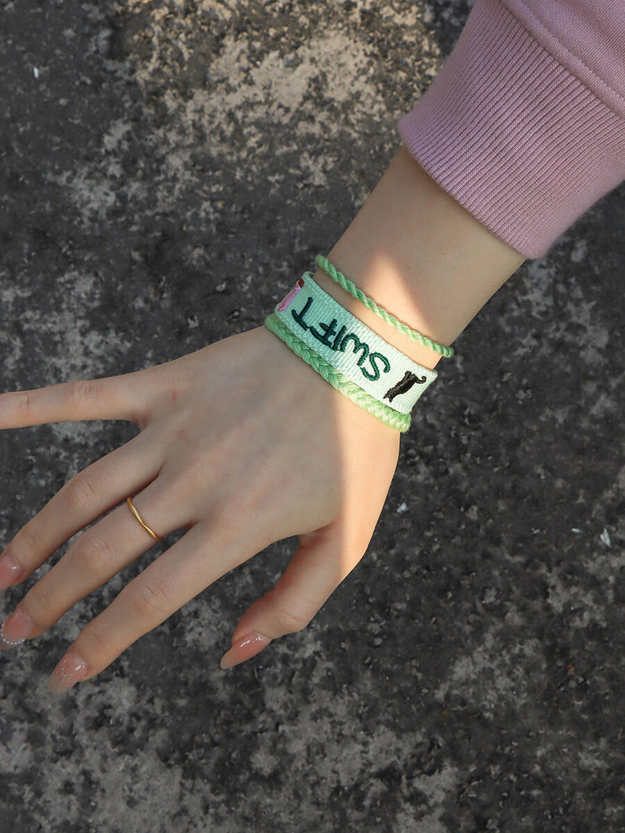 Ten bransoletka wykonana jest z wysokiej jakości tkaniny plecionej o gęstej i elastycznej strukturze. Jest odporna na pillsowanie i rozluźnianie się, zapewniając bezpieczne noszenie w codziennym użytkowaniu oraz podczas intensywnych ćwiczeń. Dzięki trwałości technice haftu niestandardowy tekst i wzory są wyraźnie wykonane w żywnych, długotrwałych kolorach. Projekt krawędzi w postaci splecionej liny nadaje wrażenie warstwowości i delikatności. Bransoletka wyposażona jest w magnetyczny metalowy zamek, który ułatwia zakładanie i zdejmowanie, a jednocześnie zapewnia stabilne i bezpieczne noszenie, łącząc estetykę z funkcjonalnością. Długość bransoletki wynosi około 18,5 cm (dopasowana do obwodu nadgarstka 17,5 cm), a jej szerokość to 3,2 cm – zapewnia komfort noszenia. Dostępna w wielu kolorach i stylach, aby spełnić różne preferencje modowe.