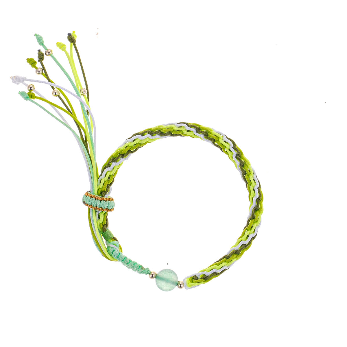 Materiał : Woskowana nić poliestrowa, naturalne kamienne koraliki, metalowe koraliki w odcieniu złota