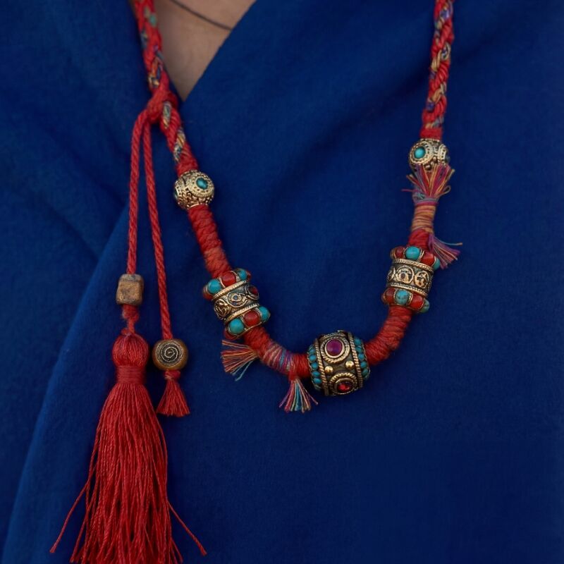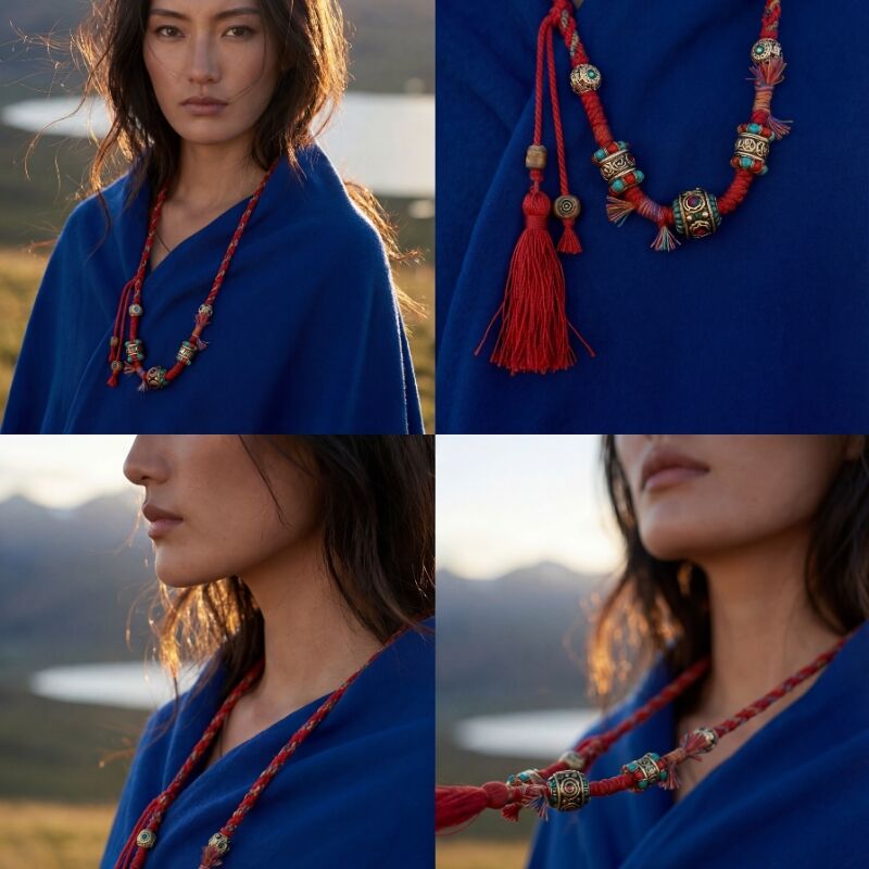 Multi-Color Braided Cord: Reflects the vibrant textile traditions of Tibet, adding visual balance and a sense of joyful positivity.